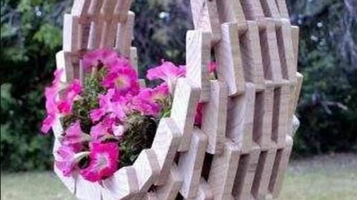 Одна голова хорошо, а две лучше, посоветовавшись с женой, решил сделать кашпо на дачу своими руками, использовав, для этого небольшие деревянные брусочки.