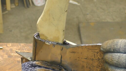 Современный способ насадки топора на топорище. Старый плотник высоко оценил такой способ