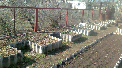 Сейчас в литературе и Сети много пропагандируют такой способ выращивания огородных культур, как высокие грядки. Это действительно удобно, повышает урожайность, да и первые овощи и зелень можно получить намного раньше. Чтобы сделать качественную долговременную грядку, для неё нужны бортики. Есть немало вариантов, как их соорудить: из дерева, из камня, из бетона, черепицы, а на фото чаще всего попадается обычный волновой шифер — по сути, он самый доступный по цене, тем более, для таких целей используют второсортный материал и отходы...