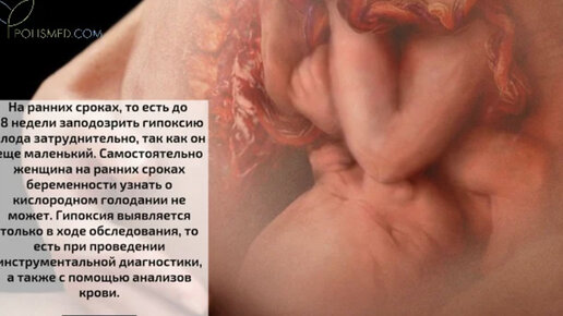 На ранних сроках, то есть до 18 недели, заподозрить гипоксию плода затруднительно, так как он еще маленький. Самостоятельно женщина на ранних сроках беременности узнать о кислородном голодании не может. Гипоксия выявляется только в ходе обследования, то есть при проведении инструментальной диагностики, а также с помощью анализов крови. На ранних сроках врачи чаще всего обращают внимание на симптомы патологий, которые потенциально могут вызвать гипоксию позже, когда малыш подрастет, и кислорода ему, соответственно, будет нужно больше...