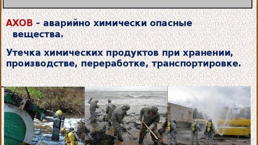 Аварийные химические опасные вещества (АХОВ) - это химические соединения, которые могут представлять опасность для жизни и здоровья человека, животных и окружающей среды в случае их неконтролируемого выброса, разлития или иных аварийных ситуаций. АХОВ могут вызывать различные последствия для организма. Поражение в результате обмена с аварийным веществом может быть как однократным, так и многократным. Симптомы отравления могут появляться сразу же после воздействия вещества или через несколько часов...