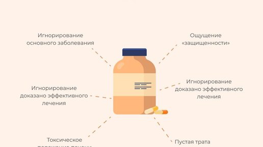Чем опасны бады? Казалось бы, ну и что? Пусть пьют, мне какое дело? Но сегодня я вам расскажу, чем же плохо пить десятки БАДов. 🔹Игнорирование основного заболевания. ♻️Чаще всего люди прибегают к БАДам, когда есть жалобы и симптомы, которые мешают им жить. За простой слабостью, усталостью, выпадением волос, сухостью кожи может скрываться все что угодно от гипотиреоза до дефицита железа. Вероятно, альтернативщик найдёт вам минимальные отклонения в селене(цинке/подставьте что-угодно) и будет лечить их...