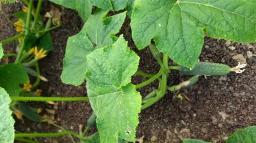 Чтобы огурцы активно наращивали листву и стебли, формируя крепкий куст, чтобы обильно плодоносить необходимо растение регулярно подкармливать. Огурцам после высадки не хватает азота, поэтому вносим органические удобрения. Под каждый куст вносим 2 горсти перегноя, 1 ч. л. измельчённого суперфосфата и 2 ст. ложки древесной золы. Внесённые удобрения равномерно перемешиваем с почвой, чтобы они не остались на поверхности грунта. Затем поливаем тёплой водой. Удобрения вносим через 10-14 дней после высадки на постоянное место...