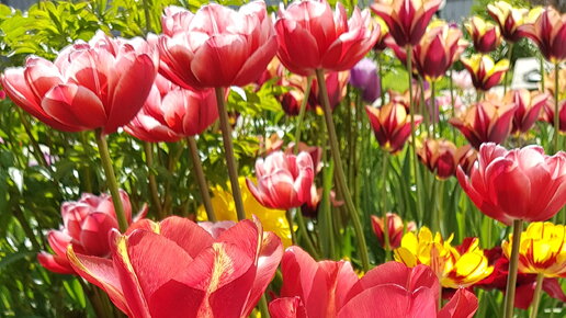 Тюльпаны в третьей декаде мая уже заканчивают свое цветение, хотя некоторые сорта еще и цветут. Красные тюльпаны у меня начинают цвести первыми, и первыми сбрасывают свои лепестки. Очень жаль расставаться с тюльпановой красотой в цветнике, но ничего не поделаешь, а вот помочь луковицам набрать силу для пышного цветния на следующий сезон нужно в обязательном порядке. Из новинок у меня этой весной тюльпан темно сиреневый с попугайной листвой и ярко - оранжевый. Названия сортов как всегда где - то записала и искать долго...