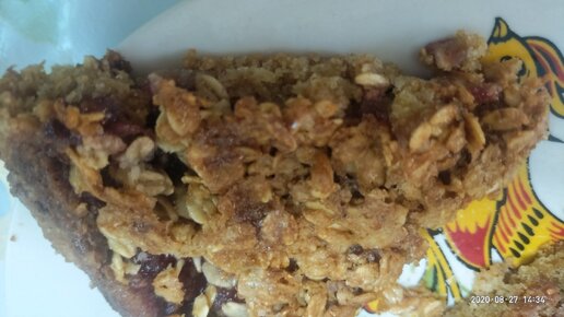 Домашний пирог с верхней золотистой корочкой из овсяных хлопьев и вареньем внутри. Очень простой рецепт.