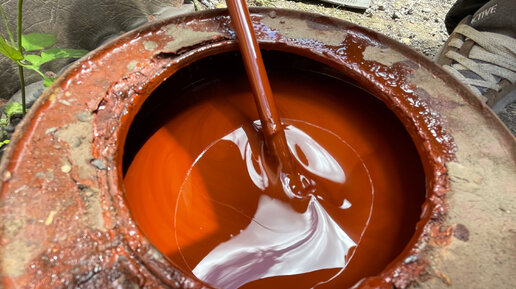 Сурик железный - краска кирпично-красного цвета, изготовленная на основе оксида железа. Сурик применяют в качестве грунтовки, а также для защиты металлических конструкций и изделий от коррозии. Например, суриком красят гаражи, трубопроводы, крыши домов, днища автомобилей. У себя в мастерской я нашел банку сурика железного 1991 года выпуска - времен августовского путча. Я вскрыл банку, перемешал, и покрасил станину старого верстака. За тридцать лет с краской ничего не случилось, что меня очень удивило...