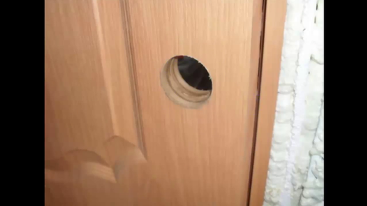 При установке замка отверстие для ключа в деревянной двери вырезаем сверлом.