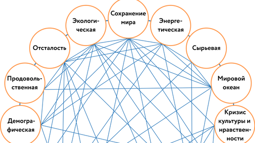 ,Проблемы, охватившие весь мир, многообразны. В числе основных специалисты выделяют проблемы сохранения мира, преодоления отсталости развивающихся стран, использования Мирового океана и мирного освоения космоса, экологическую, энергосырьевую, демографическую и продовольственную проблемы. Все они тесно взаимосвязаны и в каждой из них можно вычленить свои группы проблем. Глобальные проблемы, с которыми столкнулось человечество в XX–XXI вв...