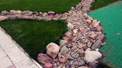 Отвод воды при помощи сухого ручья или как задекорировать канаву.