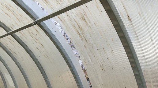 Если сотовый поликарбонат не по карману!!! Здравствуйте, уважаемые подписчики! В этот раз речь пойдёт о теплице. Многие, из северо- западного региона, помнят зиму 2021-2022 года. Она была очень снежная. Каждый год, в январе-феврале мы приезжали на дачу, чтобы очистить теплицу от снега, а в эту зиму у нас не было такой возможности и мы были готовы к тому, что наша теплица сломается. Больше всего я переживала, что под снегом прогнутся металлические конструкции. В связи с этим я не сажала семена овощных культур и решила, что буду заниматься садом и цветами...