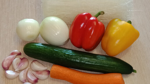 Ингредиенты: Мясо свинина – 500 грамм (можно заменить говядиной, бараниной, курицей, любым мясом, которое Вам нравится) Фунчоза – 200 грамм Перец болгарский – 2 шт. Лук репчатый – 2 шт. Морковь – 1 шт. Огурец – 1 шт. Чеснок – 10 зубчиков Соль - по вкусу Перец черный молотый - по вкусу Перец чили молотый - по вкусу Масло подсолнечное – 5-6 столовых ложек Уксус 9% - 3 столовых ложки Способ приготовления: В глубокую емкость наливаем два литра кипятка, добавляем столовую ложку без горки соли, перемешиваем, закладываем лапшу, оставляем минут на 10...