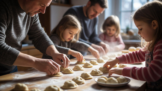 Праздничные каникулы — идеальное время, чтобы превратить кухню в творческую мастерскую. Предлагаем 5 простых, но ярких идей для совместной готовки: с детьми, друзьями или всей семьёй. За первую неделю новогодних каникул все салаты уже подъедены (читать на мотив песни «Она жуёт свой Орбит без сахара»), а впереди — ещё целая неделя выходных. В детстве мы часто собирались всей семьёй лепить пельмени — думаю, у многих так было. Если да — подтвердите в комментариях или поставьте 💛! Сейчас пельмени, конечно, можно купить в любом магазине...