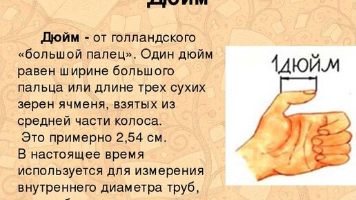 Автор Бентелев Валерий. Один дюйм равен 25,4 мм; дюйм делится на 10 линий, 12 дюймов составляют 1 фут - 304,8 мм. Меры длины английские, но нас они окружают повсеместно, причем в буквальном смысле, что доказано далее. Сначала об оружии. Наиболее известны калибры охотничьих ружей 12 и 16. За первый (или главный) калибр принят 1 фут, значит вторым калибром будет 1/2 фута или 152,4 мм, т.е. 6 дюймов. Вспомним шестидюймовки Авроры и, кстати, именно с этого калибра снаряды могут начиняться атомным зарядом...
