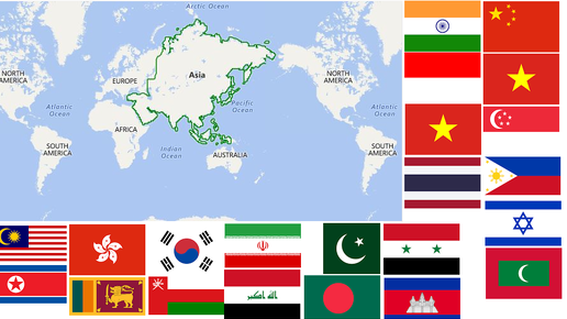 По данным ООН, по состоянию на 2020 год Азия состоит из 48 стран и является самым густонаселенным регионом на карте мира занимая 30% земной поверхности (44 579 000 кв. км)