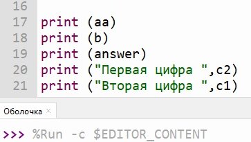 Решение задачи повышенной сложности № 2-34 из сборника задач по информатике. автор сборника - Д.М. Златопольский. Условия: Даны цифры двух целых чисел: двузначного a2a1 и однозначного b, где a1 — число единиц, a2 — число десятков. Получить цифры числа, равного сумме заданных чисел (известно, что это число двузначное). Слагаемое— двузначное число и число-результат не определять; условный оператор не использовать. Для Python может показаться странным последнее условие - "Условный оператор не использовать"...