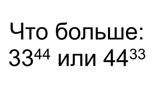В последнее время довольно часто стали попадаться задачи на сравнение двух чисел, возведённых в разные степени, например: Какое число больше - 33^44 или 44^33 (то есть, 33, возведённое в степень 44, или 44, возведённое в степень 33)? Здесь символ ^ означает возведение в степень. Или, чтобы усложнить: 222^333 или 333^222 (222 в степени 333 или 333 в степени 222)? Для решения данной задачи придётся прибегнуть к математике, но она довольно проста. И вы в этом можете убедиться ниже: ↓ ↓ ↓ Итак, нетрудно...