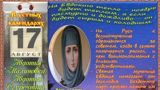 17 августа - Традиции, обычаи и поверья, связанные с этим днём. Все праздники, которые отмечаются в этот день в разных календарях.