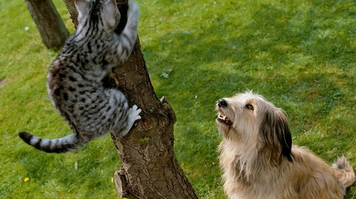 Давнее природное соперничество – кошки и собаки. Лучшие друзья человека как только видят поблизости кота, сразу становятся настоящими охотниками – с лаем и рычанием гонятся за ним, загоняют на дерево и долго ходят вокруг, ожидая, когда «жертва» спустится вниз. На этом, как правило, все и кончается – пес кота не догоняет, оба животных успокаиваются, расходятся, продолжают заниматься своими делами. Но давайте пофантазируем, и представим, что будет, если собака догонит кошку! Сразу определимся – мы не берем в расчет бойцовую «натасканную» собаку...