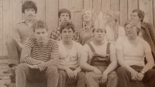 Это до армейское фото. Только сейчас увидел чёрнявый первый это Ильшат (если память выстрелила правильное имя)), он шуруп СА с радара в Кирках рядом с ПУЦем который был. Мы с ним бухали потом после субботника в общаге ПКБ. А обнялись мы уже в армии)) после моего Афгана. Прикинь у чёрта на куличках в средней Азии встретились. А я и не знал, что есть он на фото у меня. Листая старые фотографии щёлкнуло- вот и пишу... Фото сделано на Базе ПКБ в Кривом комсомольский субботник. После этого субботника Вовка он в тельняшке получил строгий выговор комсомольскийна работе в ПКБ))...