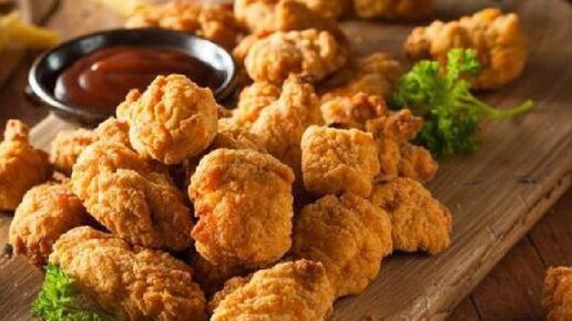 Впервые я попробовал чикен попкорн в KFC и мне очень понравилось. Вкусные, мягкие и в меру острые. Нам понадобится: Куриное филе(без костей) 500г. Мука 2 ст. л. Куриное яйцо 2 шт. Молоко 2 ст. л. Масло растительное (для фритюра). Пшеничные хлопья. Приправы (по вкусу). Сладкая паприка. Перец. Сыпучий имбирь. Соль. Карри. Куркума(на кончике ножа). Хмели-сунели. Орегано. Приготовление: 1)филе нарезаем на порционные кусочки. 2)приправляем припривами и оставляем на 5-10 мин. 3)в чашке делаем кляр:разбивает яйца и взбиваем с солью...