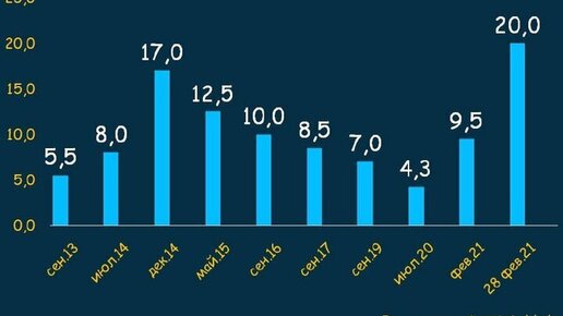 1. Центробанк действует весьма решительно, я впечатлён. Базовую ставку подняли с 9,5% до 20% — играть против рубля теперь так же весело, как ловить падающий нож. В памятном 2014 году ставку до 20% не поднимали: