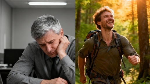 Знаете, есть люди, которые входят в комнату – и всё будто оживает. Не обязательно громкие или яркие, нет. Просто от них исходит какая-то энергия жизни, присутствия, наполненности. А есть другие – формально живые, функционирующие, но будто выцветшие, будто кто-то убавил яркость и контрастность. Ходят, работают, общаются – но изнутри пусто 😔 Вчера смотрел на своего клиента Дмитрия, сорок два года, успешный IT-директор. Рассказывает про свой день: подъём в шесть, час в дороге, восемь часов работы, снова дорога, ужин перед ноутбуком, пара часов соцсетей, сон...