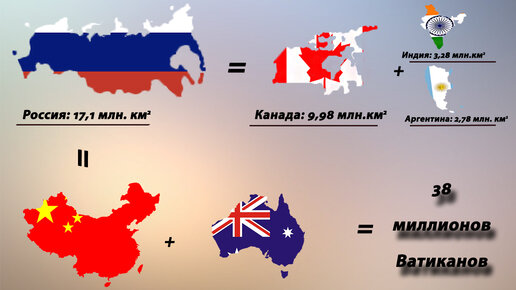 Такая ли огромная территория у России как нам кажется? Давайте сравним с семеркой самых больших стран.