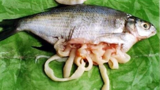 Российские медики уверяют - морская рыба с глистами в еду непригодна, но не опасна. Доподлинно известно, что речная и морская рыба, а также ракообразные и некоторые беспозвоночные могут быть заражены паразитами (гельминтами), опасными для человека. В этих случаях рыба является лишь переносчиком заболеваний. Они могут в значительной степени поразить организм человека, домашних и диких животных. «Наиболее распространенные в нашей стране гельминтозы, передающимися от речных, озерных и проходных рыб...