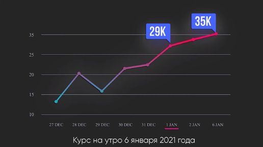 В начале 2020 курс биткоина колебался на уровне 8-9тыс долларов, тогда эксперты говорили о том что главная цифровая монета вряд ли сможет показать стабильный рост — "Мне видится в 2020 году постепенное затухание до $5000 с пробитием этой поддержки и дальше еще более медленном опускании ниже...