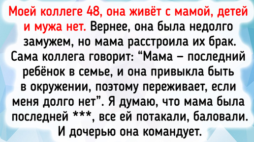 У моей одноклассницы мама чересчур заботливая. В школе этого особо не замечала, так как учились вместе всего два года. Дети у нас родились с разницей в полгода, и на детской площадке я разглядела их отношения — внуком занималась бабушка, вела себя так, будто она ему мать, продолжая контролировать инфантильную дочь...