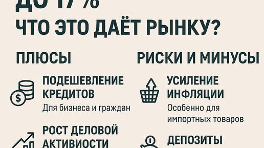 Вот сжатый разбор по тому, что даёт снижение ключевой ставки ЦБ до 17% в России, и на что стоит обратить внимание