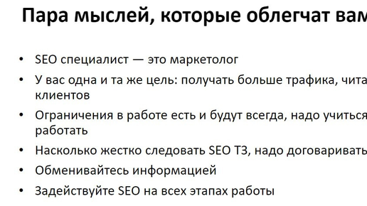 Если отвечать просто: SEO-специалист увеличивает количество переходов с поисковых систем. А как именно? Занимается текстами, семантическим ядром, техническими настройками сайта. Но на трафик влияют не только, и даже не столько эти факторы. Поисковики учитывают всю доступную им информацию о вашей компании. Все, что попадает в онлайн-среду, будет работать — в плюс или в минус. Поиск пытается понять: что за компания стоит за этим сайтом, что за бизнес? Как давно он существует? Много ли клиентов,...