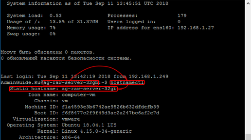 Ubuntu Server 20.04 и 18.04 – Изменение имени сервера