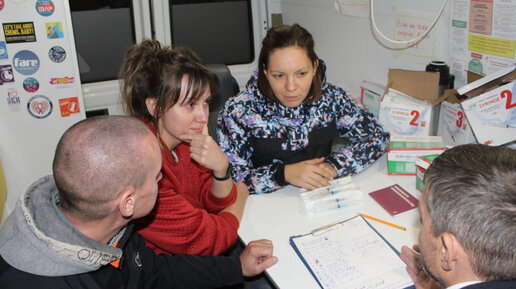 Корреспондент Инфо24 съездил с сотрудниками Фонда Андрея Рылькова на окраину Москвы, раздавал вместе с социальными работниками чистые шприцы, медикаменты и презервативы наркозависимым и пытался разобраться, как это помогает людям. Мы сидим в микроавтобусе с Леной и Владой. На полках упаковки со шприцами, вода для инъекций, спиртовые салфетки и прочие медикаменты. Стены автобуса обклеены стикерами с надписями вроде «No more drug war» или «Поддержка, а не наказание» и самодельными плакатами про 228 статью УК РФ и про то, что делать «если тебя кумарит»...