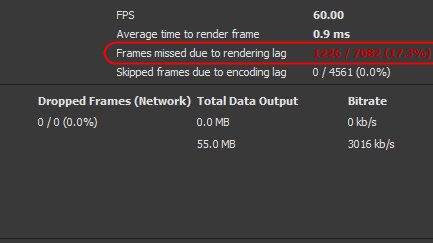 Проблема обычно вызвана высокой загрузкой видеокарты или процессора. Система работает на пике возможностей и не может нормально передавать кадры кодировщику. Если используется аппаратный кодировщик (видеокарта), то убедитесь, что GPU не загружен до 100% при стриме или записи игры. Кодировщику необходимо некоторое количество ресурсов GPU (2-3%) для работы определенных алгоритмов сжатия. Реже проблема связана со сбоем видеодрайвера, отсутствием оптимизации Windows, переизбытком медиа-источников и плагинов в OBS...