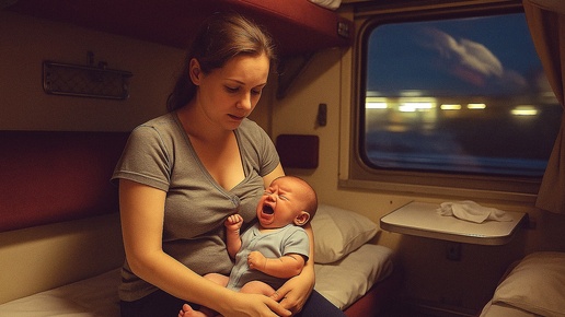 Катя шагала к поезду, будто на жизненный экзамен: сон ноль, моральный запас на донышке, но зато с чемоданом, рюкзаком и сыном на руках. Сына звали Федя, ему только исполнилось два месяца, и это была его первая дальняя поездка. Катя надеялась, что всё пройдет тихо и мирно. Но поездочка получилась та ещё! Дорогие читатели! История опубликована по мотивам жизненного опыта одного из наших читателей. Билет удалось купить только в плацкарт. О купе оставалось только мечтать: деньги уходили на подгузники, влажные салфетки и ипотеку...