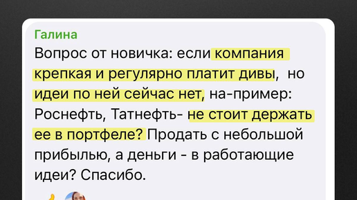 1. Несмотря на то, что это хорошие крепкие компании со стабильным дивидендом, мне они неинтересны. Потому что в текущий момент у этих компаний нет драйверов роста. 2. Всё зависит от цели. — Если цель 30% годовых и выше, тогда нужны акции с большим запасом прочности. — Если цель дивидендный портфель, то эти компании могут быть полезны. Но нужно следить за фин отчетами, чтобы карета не превратилась в тыкву. 3. Вернемся к вопросу на скрине. Что я делаю...