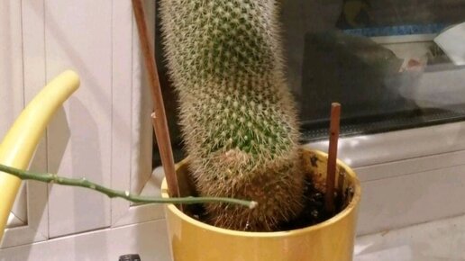 Что делать с кактусом переростком? Что делать с кактусом, который за семь лет сильно вырос в высоту, периодически падает, и интерьер не украшает? Ответ "текилу" не принимается! Мы любим наши кактусы и будем их беречь. Если кактус не держится на своих корнях, значит, у него плохо о здоровьем. Это могут быть и насекомые, и плохая подкормка. Что же делать с такими переростками? Можно их просто пересадить в другой горшок и постараться вылечить. Для этого нужно обмотать кактус пищевой плёнкой в несколько слоёв и тихонько потянуть вверх...