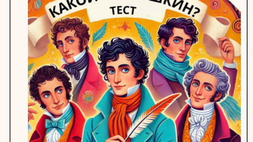 Александр Сергеевич Пушкин — это целая вселенная. В нём можно найти и романтика, и сатирика, и философа, и бунтаря. Хотите узнать, каким Пушкиным могли бы быть вы? Пройдите наш тест и откройте своё «Пушкинское альтер эго»! 1. Что вдохновляет вас на творчество? 2. Как вы справляетесь с трудностями? 3. Как вы относитесь к обществу? 4. Какой стиль письма вам ближе? 5. Что вы чувствуете, когда встречаете препятствия? 6. Как вы проводите свободное время? 7. Ваше отношение к любви? 8. Что бы вы выбрали? Результаты: Больше ответов "a" — Романтичный Пушкин Вы — Пушкин-романтик...