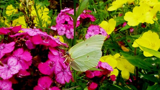 Удивительную картину можно наблюдать в этом году на даче. В мой сад со всей округи слетаются бабочки лимонницы. В первой декаде июля отцветает турецкая гвоздика. Жаркий летний воздух наполнен ароматом этих цветов. На турецкие гвоздички и слетаются бабочки. Но лимонниц привлекает не запах цветов, а их окраска. Лимонницы выбирают красные, сиреневые, розовые цветы. Меня заинтересовали особенности поведения этих бабочек. Не принесут ли они вреда растениям? К счастью, мои опасения оказались напрасными...