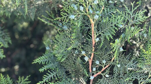 Дорогой читатель! Перед вами веточка можжевельника, на которой есть маленький жучок. А если быть точнее, то его личинка. Сможете ли вы отыскать его на фото и понять что же это за насекомое за 60 секунд?