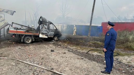 Пепелище и обгоревшая машина: кадры страшного пожара в Омске