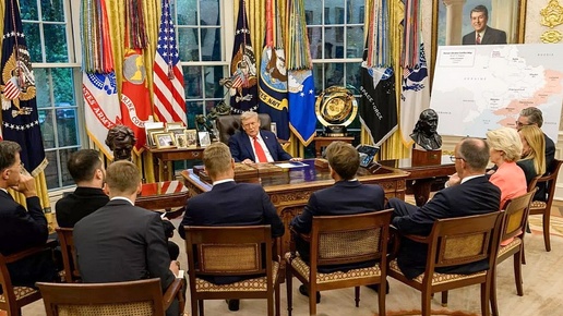 Весьма разноречивые данные поступают об итогах и последствиях встречи президента США с лидерами ЕС и Украины. Её ожидание было весьма нервозным. Все помнили фиаско Зеленского в Овальном кабинете в феврале, так что ставки были задраны. Однако на удивление, этот визит прошел куда более спокойно. Перепалки на камеры удалось избежать. Сторонам довелось обсудить ряд животрепещущих вопросов. Таких, как тема обоюдных территориальных уступок России и Украины и гарантии безопасности Незалежной со стороны коллективного Запада...
