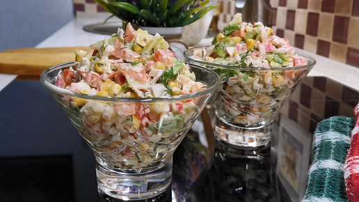 Салатик простенький, зато нравится всем без исключения и уходит весь до крошки. Совершенно несложный в приготовлении, лёгкий салат и выходит совсем недорого. Готовлю его в любой сезон и на праздничный стол, и на обычный семейный ужин. Итак, готовим сегодня праздничный салат из простых недорогих продуктов, сочный, легкий и интересный по составу. Все ингредиенты, как всегда, в конце статьи. А сразу после них вас ждет еще несколько вкусностей. Обязательно гляньте хоть одним глазком. Что-нибудь вам точно из этого понравится...