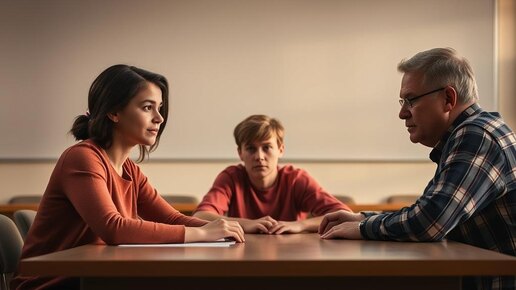 Анна сидела за столом в своём небольшом кабинете и перечитывала запись в журнале обращений. Карандашом на полях было обведено несколько фраз: «угрожает судом», «кричит на ребёнка в коридоре», «ребёнок плачет, отказывается идти домой». Сообщение оставила классная руководительница восьмого «Б». За окном по коридору проходили дети, хлопали дверцы шкафчиков, кто‑то смеялся, кто‑то спорил. В кабинете было тихо. На подоконнике стояли две папки с надписью «Служба школьной медиации». Анна коснулась корешка верхней...