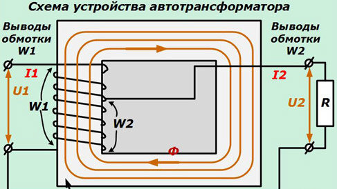 Существует несколько определений, что такое автотрансформатор, самый простой вариант на мой взгляд, такой: Автотрансформатор, это - трансформатор у которого обмотка низкого напряжения является частью обмотки высокого напряжения, цепи этих обмоток имеют не только магнитную, но и гальваническую связь. Автотрансформатор может работать в обоих направлениях, а для его расчета справедливы все принципы и формулы, работающие для обычного трансформатора. Автотрансформатор состоит из одной обмотки, от которой сделано один или несколько отводов, образующих вторичные витки...