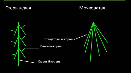 Существуют всего две корневых системы, а именно: 1)Стержневая корневая система. В данной корневой системе хорошо выражены главный корень и боковые корни. Характерны для класса двудольных 2)Мочковатая корневая система. Данная корневая система имеет исключительно придаточные корни, а главный корень отсутствует...