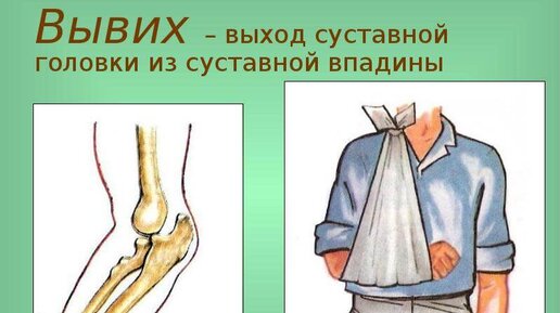 Подписывайтесь и вы выживите! Вывих - смещение суставных концов костей, при котором утрачивается их правильное соприкосновение. Вывихи обуславливаются чрезмерным движением в суставе (при сильном ударе в область сустава, падении)...