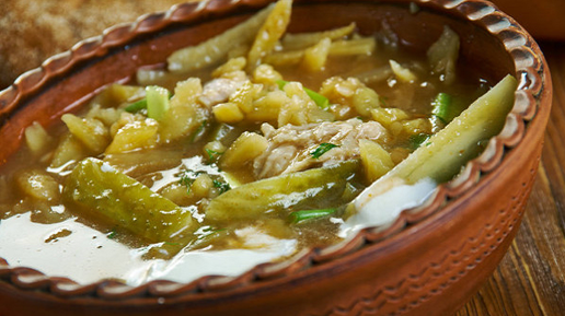 Калья́ – это распространённое на Руси в XVI-XVII вв. жидкое первое блюдо, сваренное на огуречном рассоле и являющееся прообразом современных рассольников. Бытует мнение, что калья является исключительно рыбным блюдом, а её название якобы происходит от финского «kala» (рыба). На деле же наименование супа с рыбой никак не связано. Вот какое определение калье дал в своём словаре В. Даль: «калья – род борща на огуречном рассоле, с огурцами, со свёклой и с мясом, а в пост, с рыбой и икрой». Как следует из определения, рыба не является обязательным ингредиентом, в то время как рассол обязателен...