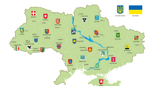 Административные единицы стран имеют свои флаги и гербы. Ниже представлены три карты, раскрашенные гербами или флагами своих регионов. Российская федерация Регионы России, думаю, известны каждому. Ниже на карте можно разглядеть все гербы регионов России. Еще ниже изображена карта Украины с регионами. ВАЖНО: Карта украинская, на украинском языке, следовательно Донецкая, Луганская области и Крым там присутствуют. Но давайте просто рассмотрим самые интересные гербы. На гербе Донецкой области изображена пальма...